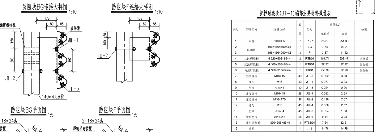 在波形護欄代碼中BT-1通常表示的是端部翼墻式波形梁與混凝土護欄過渡段。具體規(guī)格需要看設計圖紙,有的是兩波護欄,有的是三波護欄。