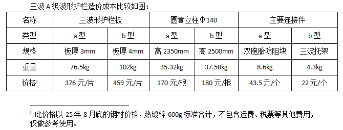 三(A)級b型波形梁護欄規格參數及適用范圍: