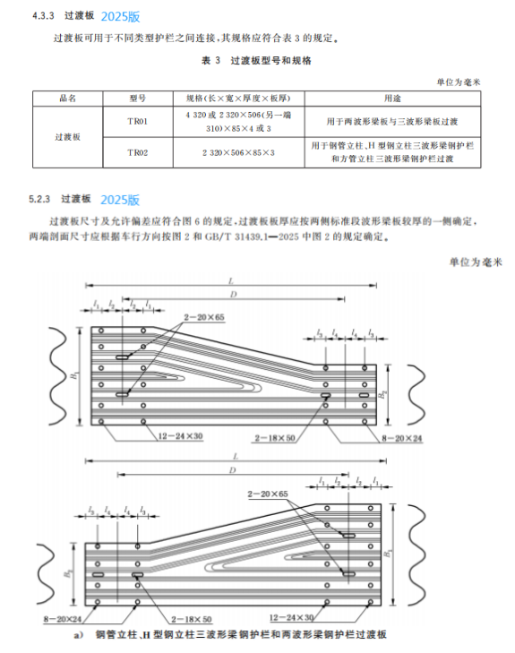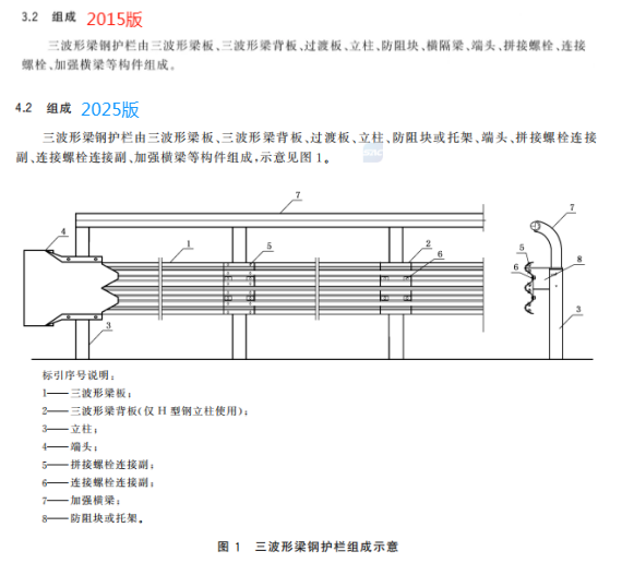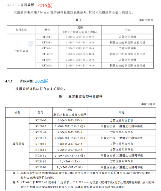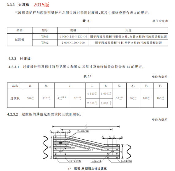 c) 更改了三波形梁板用途、型號和規(guī)格(見4.3.1,2015年版的3.3.1);
