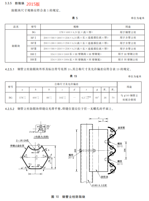 f) 更改了鋼管立柱防阻塊的用途、規(guī)格、尺寸和允許公差(見4.3.5、5.2.5.1、5.2.5.2,2015年版的3.3.5、4.2.5.1、4.2.5.2);