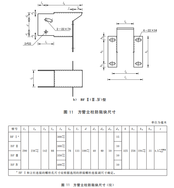 g) 增加了 BF Ⅳ型防阻塊的用途、規(guī)格、尺寸和允許公差要求(見4.3.5、5.2.5.3);