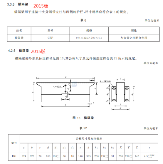 h) 刪除了橫隔梁及相關技術要求(見2015年版3.3.6、4.2.6);