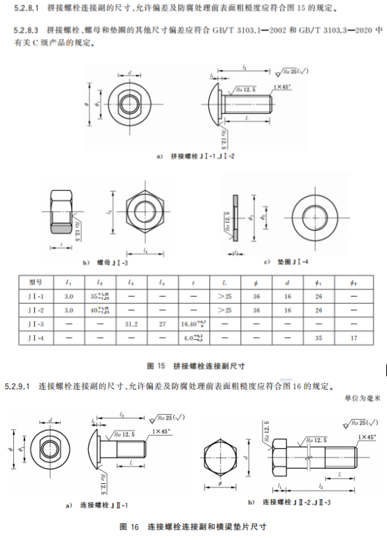 j) 更改了拼接螺栓連接副和連接螺栓連接副的用途、規格、公稱尺寸及允許偏差(見4.3.8、4.3.9、5.2.8.1、5.2.8.3、5.2.9.1和5.2.9.3,2015年版的3.3.8、3.3.9、4.2.8.1和4.2.9.1);