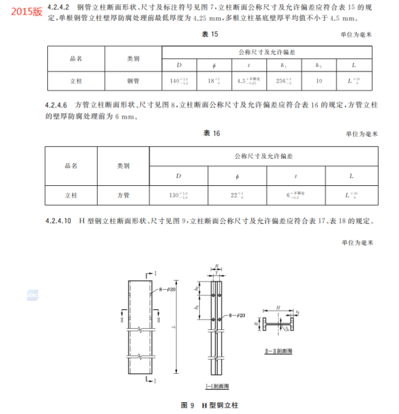 n) 更改了鋼管立柱、方管立柱和 H 型鋼立柱的尺寸要求(見5.2.4.2、5.2.4.6、5.2.4.10,2015年版4.2.4.2、4.2.4.6和4.2.4.10);